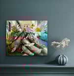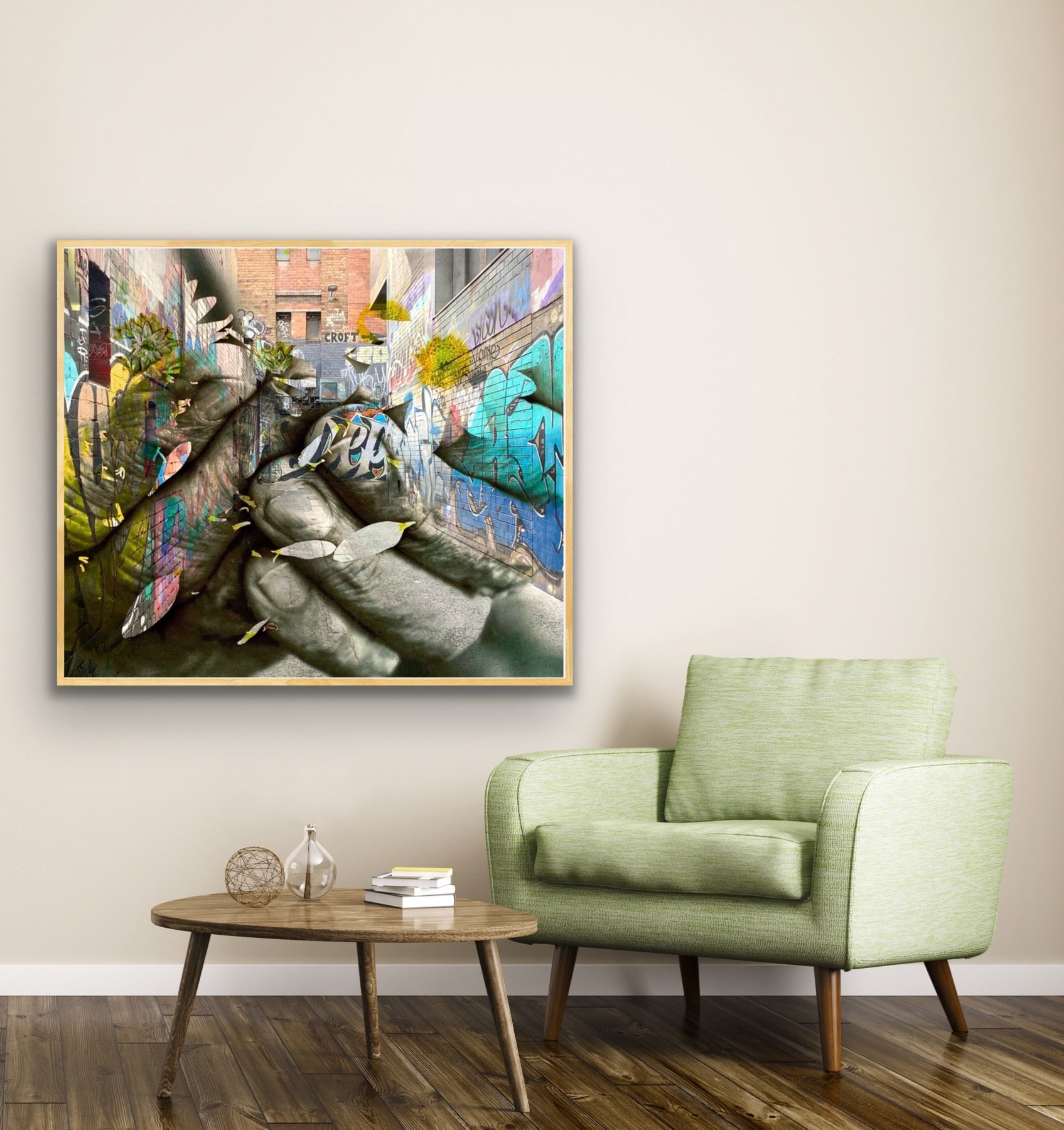 Printed, stretched, framed in raw oak the canvas will be numbered and signed. The framed print measures 80x70cm.