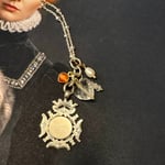 Made in Vyse St; Birmingham in 1897 by Charles Edward Solomon This fob watch medal has been repurposed with charms of freshwater pearl, crystal, moonstone and agate on an Italian 50 cm sterling silver chain, to create a stunning, unique necklace.