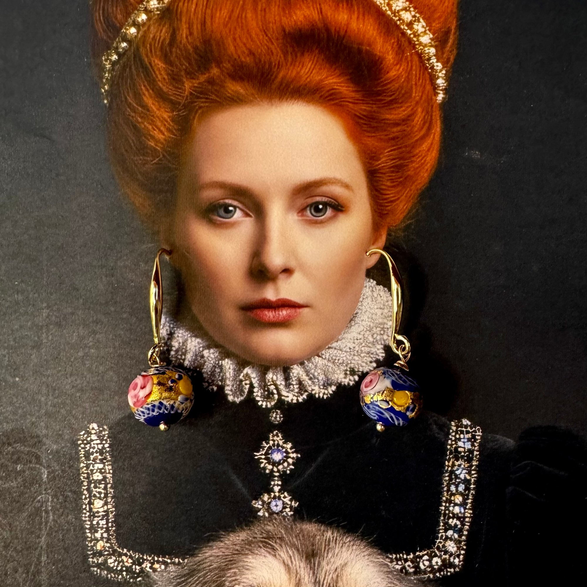 These early 1900 Murano beads are exquisite in colour and detail. They sit on sterling silver rolled gold earring hooks and drop 3.5 cms from the earlobe.