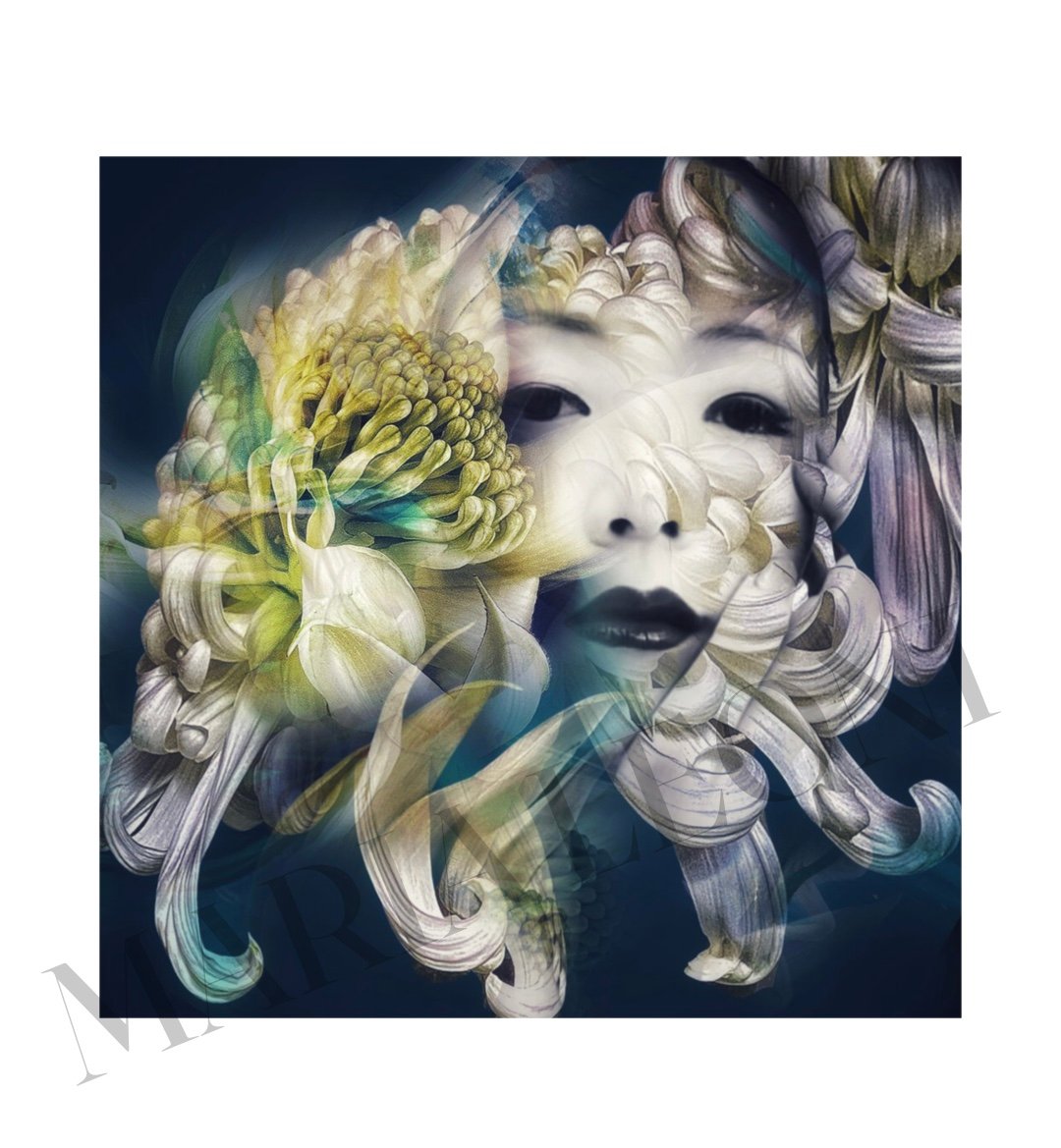 Original digital collage by Maria Leoni printed and stretched on canvas, 80x100cm with a raw oak floating frame.