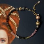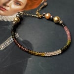 This sweet little bracelet is made of tourmaline, a stone known for its wide range of colour and metaphysical properties including protection, grounding and energy cleansing. These tiny stones are faceted giving a sparkle to the bracelet, it is finished off with freshwater pearls and sterling silver rolled gold chain and clasp.